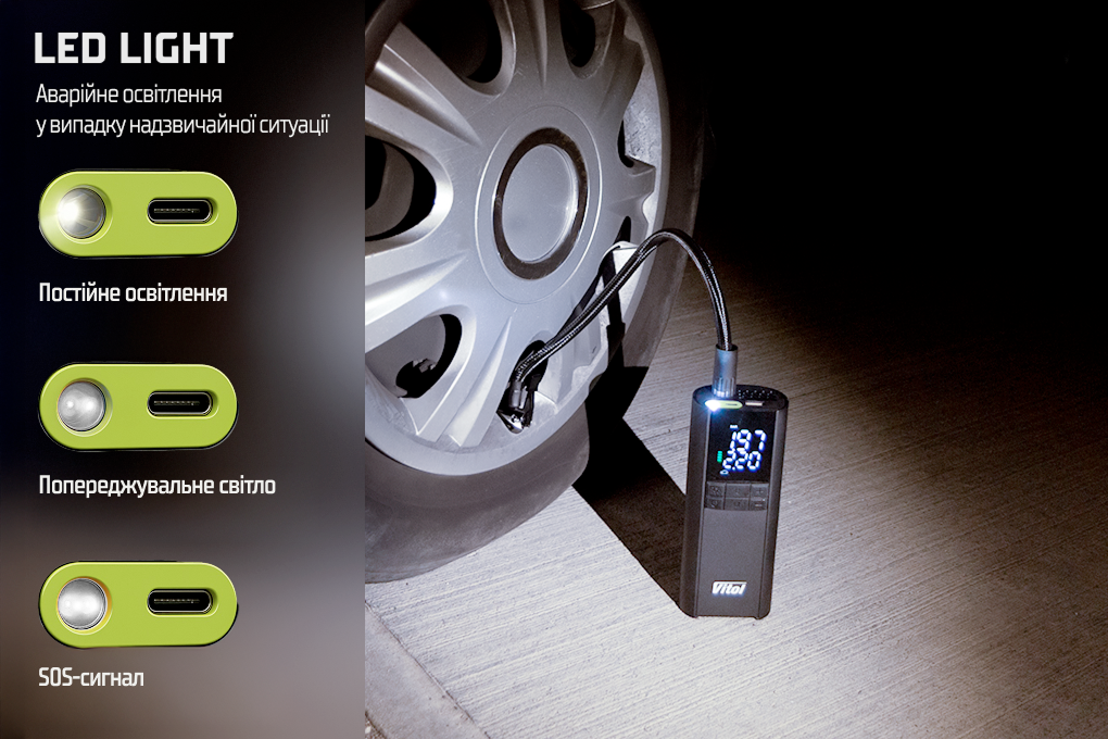 Портативний компресор Vitol K-35 3в1 — це не лише насос для шин, а й мультифункціональний гаджет для щоденного використання.
