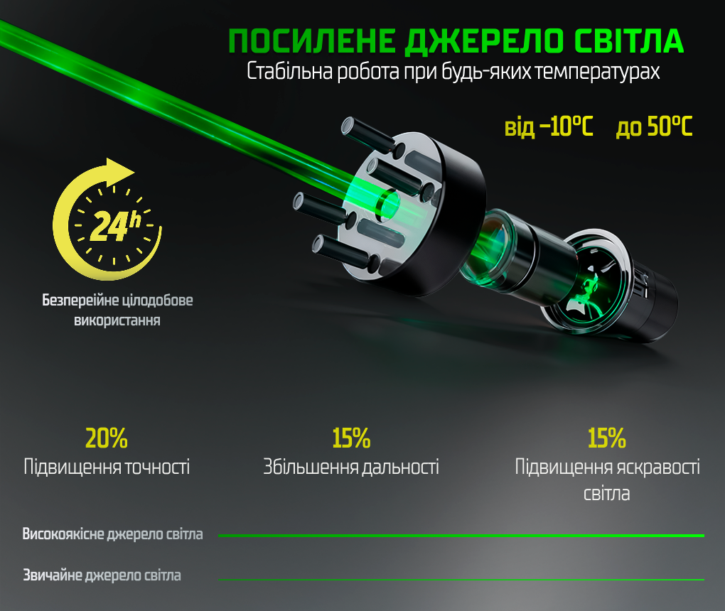🔋 Висока точність та чіткість променя навіть при яскравому освітленні