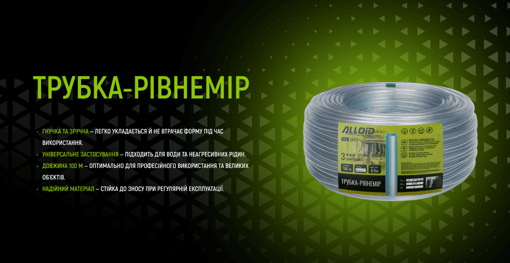 Alloid. Трубка-рівнемір 6 × 1,5 мм, 100 м — прозора гнучка трубка для подачі води або зливу рідин.