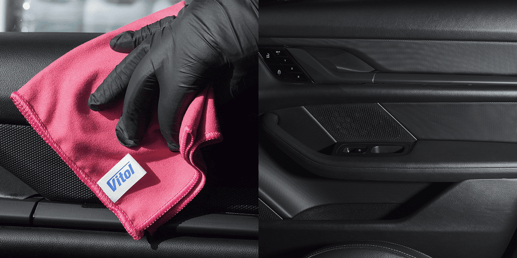 Серветка з мікрофібри Vitol добре сумісна з будь-якими засобами догляду за салоном авто, і побутовою хімією, вона не залишає розводів і подряпин на поверхні, що особливо важливо при митті стекол і дзеркал.