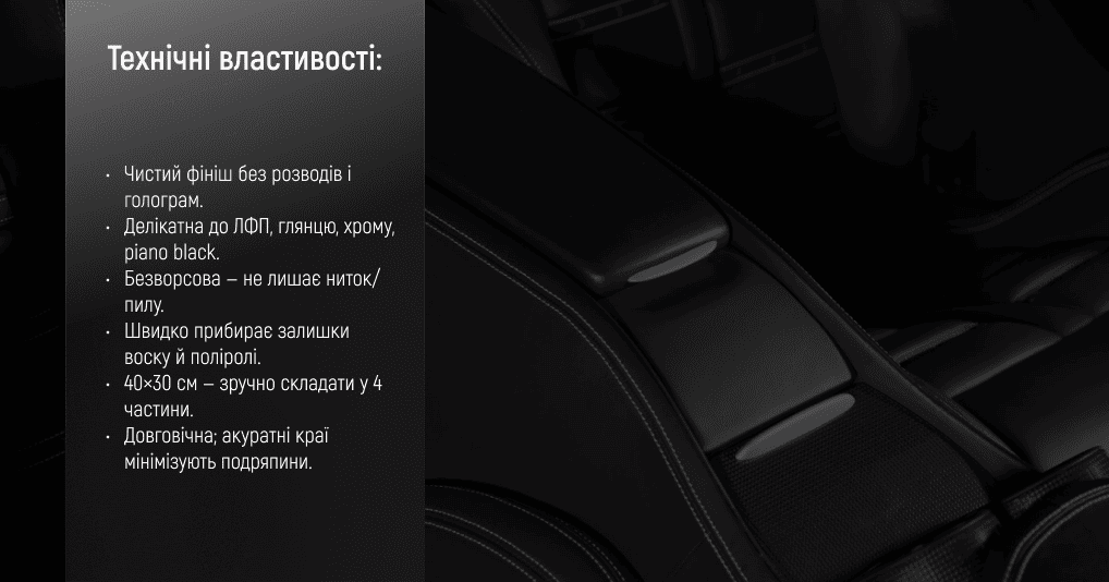 - Окрему серветку тримайте для хрому/піано-глянцю, щоб не переносити залишки воску на скло.