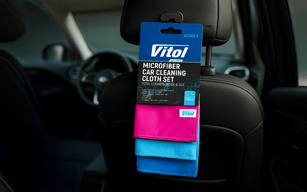 Набір ганчірок з мікрофібри від ТМ Vitol - краще рішення для очищення й полірування пластикових деталей всередині салону авто, а також для дзеркал, стекол, фар, колісних дисків і навіть для меблів.