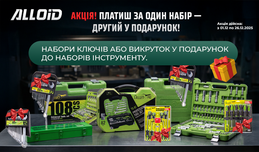 АкціяНабір ключів або викруток у подарунок до наборів інструментуДіє з: 01.12.2025 по: 26.12.2025.12Дн. Залишилося. -