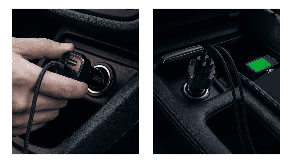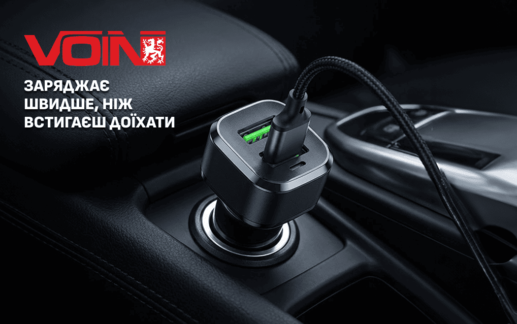 - Вставте зарядний пристрій VOIN у прикурювач автомобіля (12/24V).