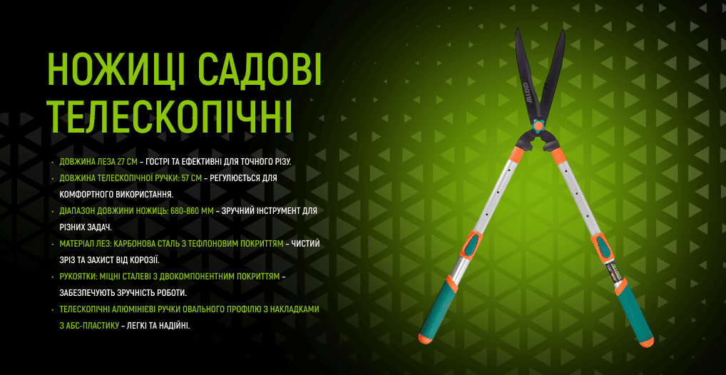 - Дістати глибокі/високі гілки без драбини завдяки телескопічним ручкам.
