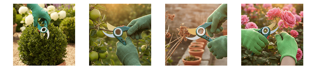 - Санітарна та формувальна обрізка кущів, декоративних і плодових дерев, видалення сухих і пошкоджених пагонів.