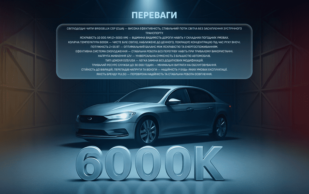 Лампи PULSO LR2-D2S – сучасне рішення для яскравого та стабільного автомобільного освітлення. Вони забезпечують потужний світловий потік 10000 Лм та колірну температуру 6000K, що робить водіння комфортним та безпечним навіть уночі та в погану погоду