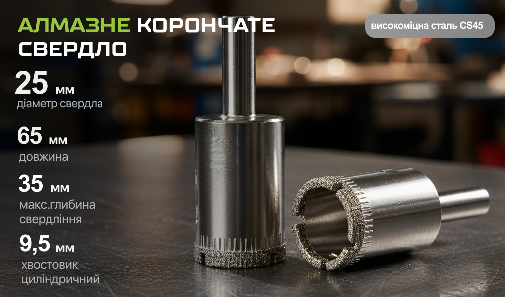 Завдяки алмазному напиленню робочої частини забезпечується чистий отвір без сколів, а сталева основа гарантує довговічність та стабільну роботу під час свердління сантехнічних і оздоблювальних поверхонь.