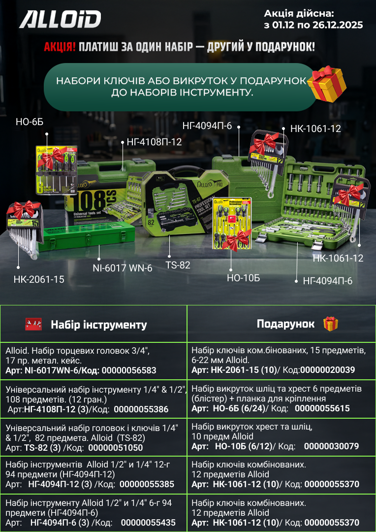 До розділу: Набір ключів або викруток у подарунок до наборів інструменту