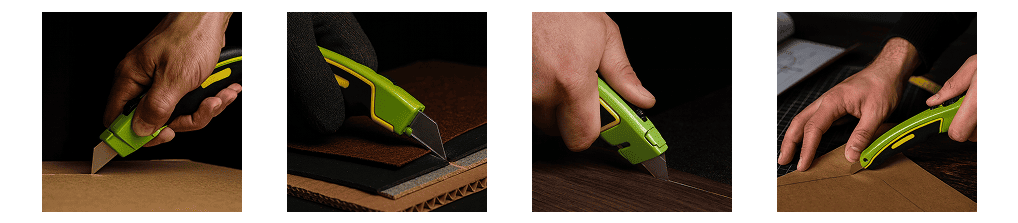 - Призначений для різання щільних матеріалів — картону, гуми, шкіри, лінолеуму, плівки, пластику, гіпсокартону та килимових покриттів.