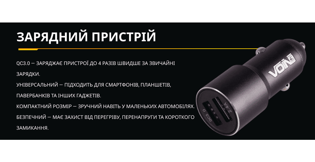 Автомобильное зарядное устройство VOIN C-30207Q, 2USB QC3.0 12/24V Port 1-5V*3A/9V*2A Port 2-5V*2.4A и другие товары вы можете приобрести ОПТом и в РОЗНИЦУ и заказать доставку по всей Украине в нашем интернет-магазине аксессуаров и инструмента для автомобиля vitol.com.ua.