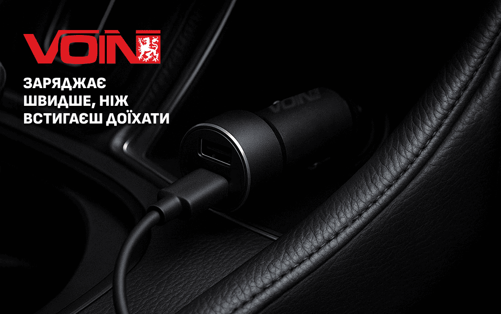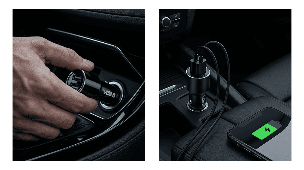 - Вставте зарядний пристрій VOIN у прикурювач автомобіля (12/24V).