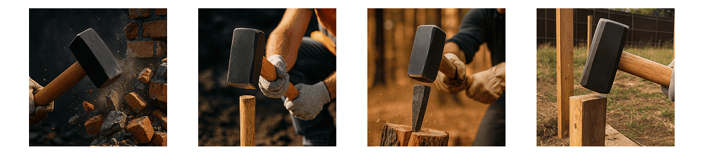 - Монтаж/ударні роботи: забивання кілків, анкерів, палік, вирівнювання плит/бордюрів.