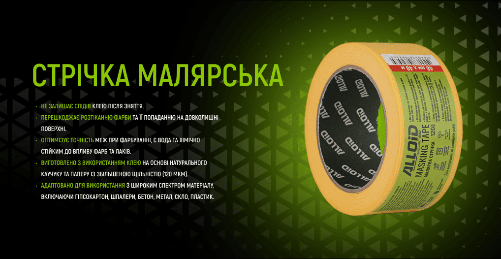 Стрічка малярська 48мм х 40м, 120мкм Alloid та інші товари ви можете придбати ОПТом та в РОЗДРІБ і замовити доставку по всій Україні у нашому інтернет-магазині аксесуарів та інструменту для автомобіля vitol.com.ua.
