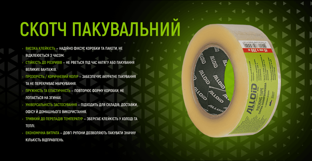 - Використання у логістиці та кур’єрських службах для швидкого та надійного заклеювання.
