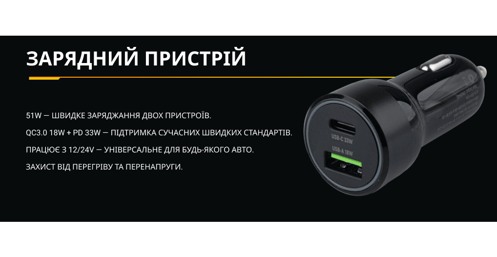 - Сумісність: смартфони, планшети, навігатори, гаджети USB-A та USB-C