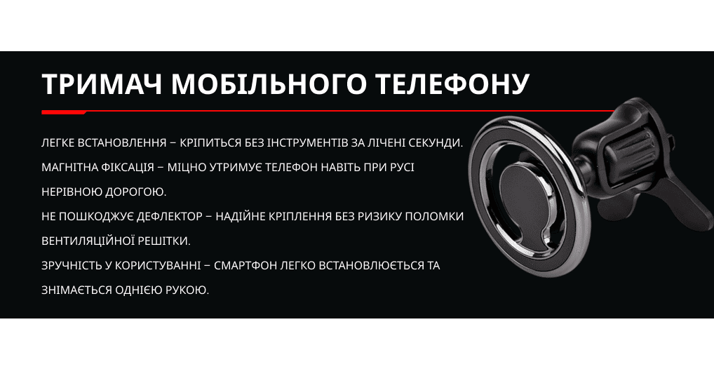 - Тип кріплення: магнітний, фіксація на дефлектор.