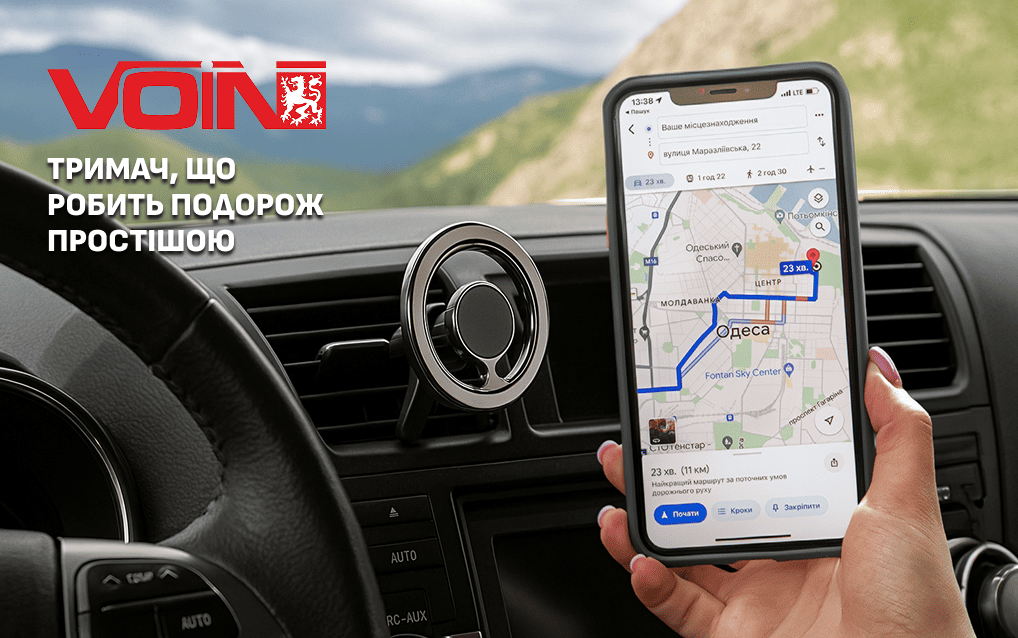 VOIN UHV-2679BK – це компактний та зручний магнітний тримач для мобільного телефону, який легко кріпиться на вентиляційну решітку автомобіля.