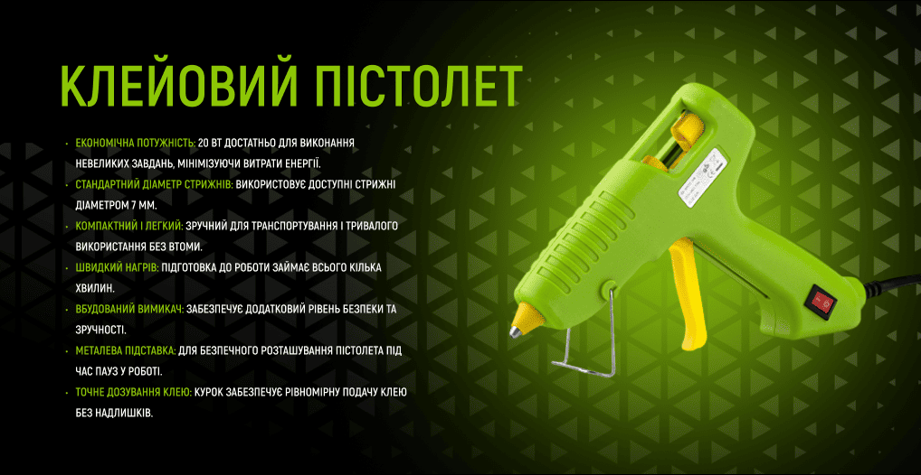 Alloid. Клейовий пістолет 20Вт, 7мм