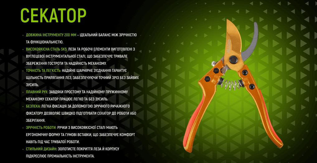 Alloid Pro. Секатор 200мм, лезо SK5 (PS-200313) та інші товари ви можете придбати ОПТом та в РОЗДРІБ і замовити доставку по всій Україні у нашому інтернет-магазині аксесуарів та інструменту для автомобіля vitol.com.ua.