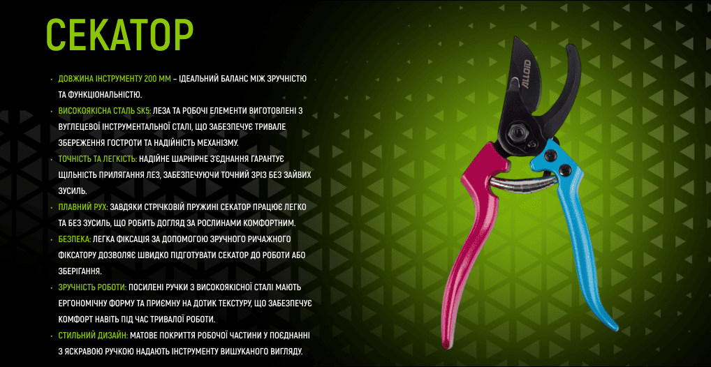 Alloid Pro. Секатор 200мм, лезо SK5 (PS-200389) та інші товари ви можете придбати ОПТом та в РОЗДРІБ і замовити доставку по всій Україні у нашому інтернет-магазині аксесуарів та інструменту для автомобіля vitol.com.ua.