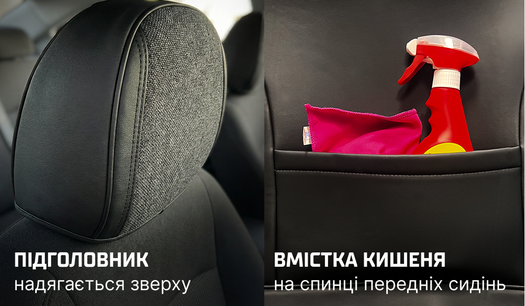 Чохли VOIN продумані до дрібниць: підголовник легко надягається зверху та надійно фіксується, повторюючи форму сидіння без складок чи перекосів.