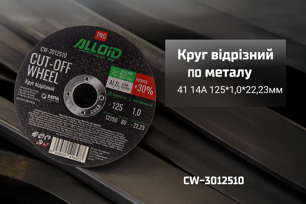 Alloid Pro. Круг відрізний по металу 41 14А 125 1,0 22,23мм та інші товари ви можете придбати ОПТом та в РОЗДРІБ і замовити доставку по всій Україні у нашому інтернет-магазині аксесуарів та інструменту для автомобіля vitol.com.ua.