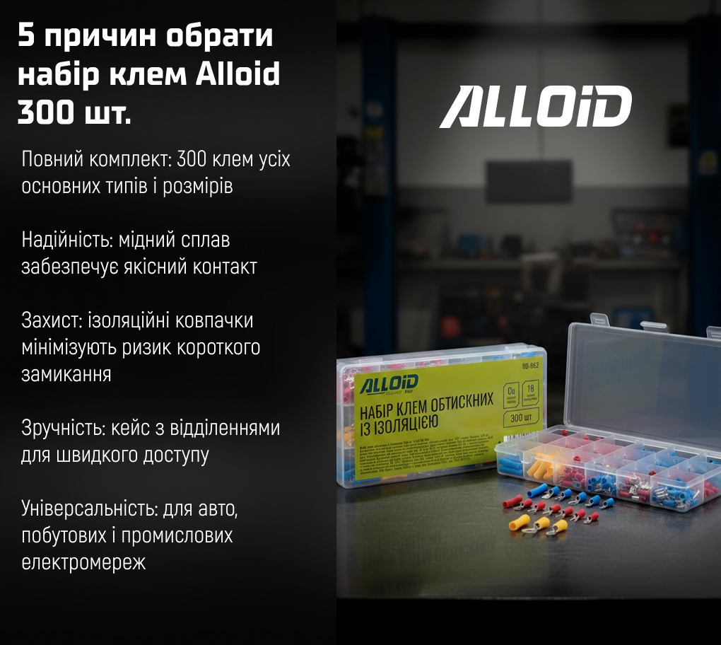 Alloid. Набір клем обтискних із ізоляцією 300 шт та інші товари ви можете придбати ОПТом та в РОЗДРІБ і замовити доставку по всій Україні у нашому інтернет-магазині аксесуарів та інструменту для автомобіля vitol.com.ua.
