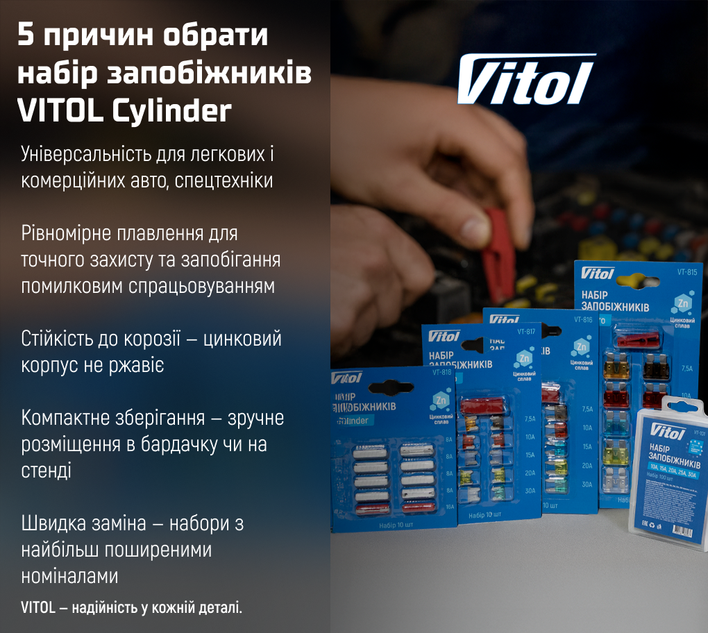 Набір запобіжників VITOL Cylinder — надійний захист для вашого авто