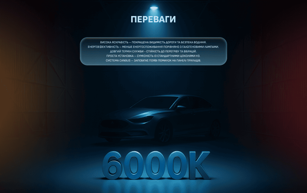 - Колірна температура, К: 6000