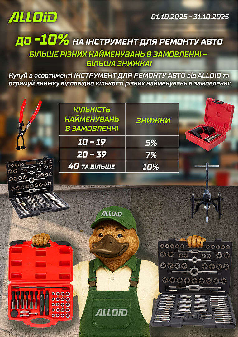 До -10% на ІНСТРУМЕНТ ДЛЯ РЕМОНТУ АВТО