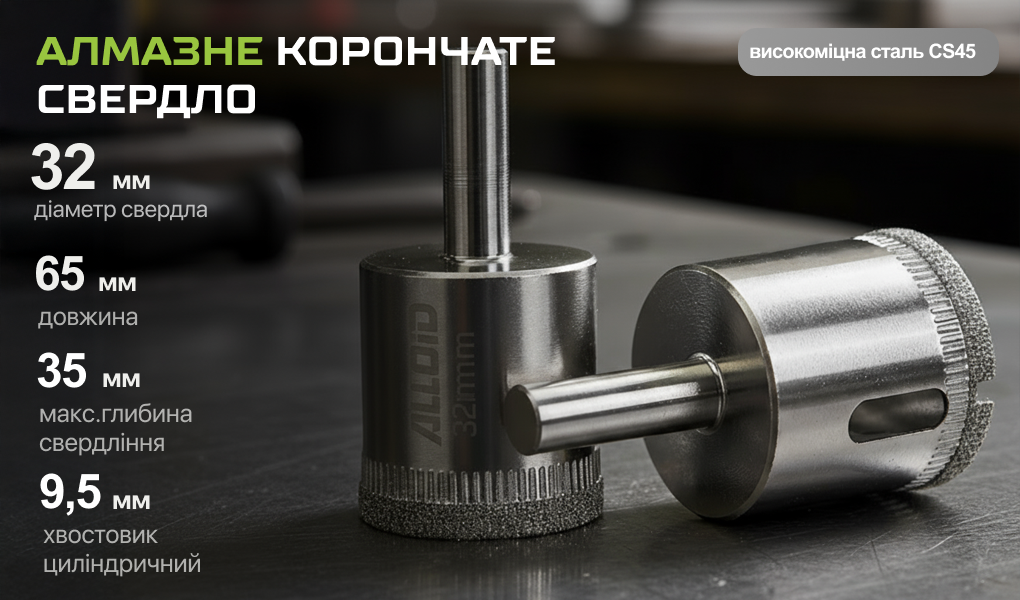 Завдяки алмазному напиленню робочої частини забезпечується чистий отвір без сколів, а сталева основа гарантує довговічність та стабільну роботу під час свердління сантехнічних і оздоблювальних поверхонь.