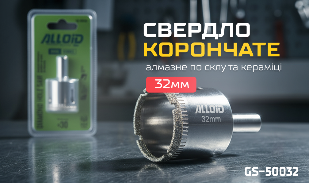 Alloid Base. Свердло корончате алмазне по склу та кераміці 32ммКод товару:00000049724