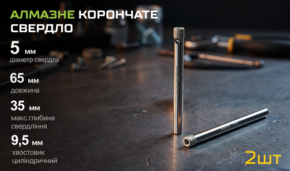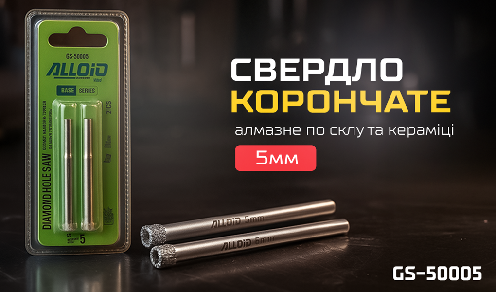 Alloid Base. Свердло корончате алмазне по склу та кераміці 5мм (2шт) та інші товари ви можете придбати ОПТом та в РОЗДРІБ і замовити доставку по всій Україні у нашому інтернет-магазині аксесуарів та інструменту для автомобіля vitol.com.ua.