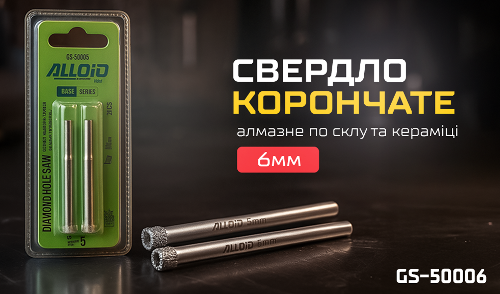 Alloid Base. Свердло корончате алмазне по склу та кераміці 6мм (2шт) та інші товари ви можете придбати ОПТом та в РОЗДРІБ і замовити доставку по всій Україні у нашому інтернет-магазині аксесуарів та інструменту для автомобіля vitol.com.ua.