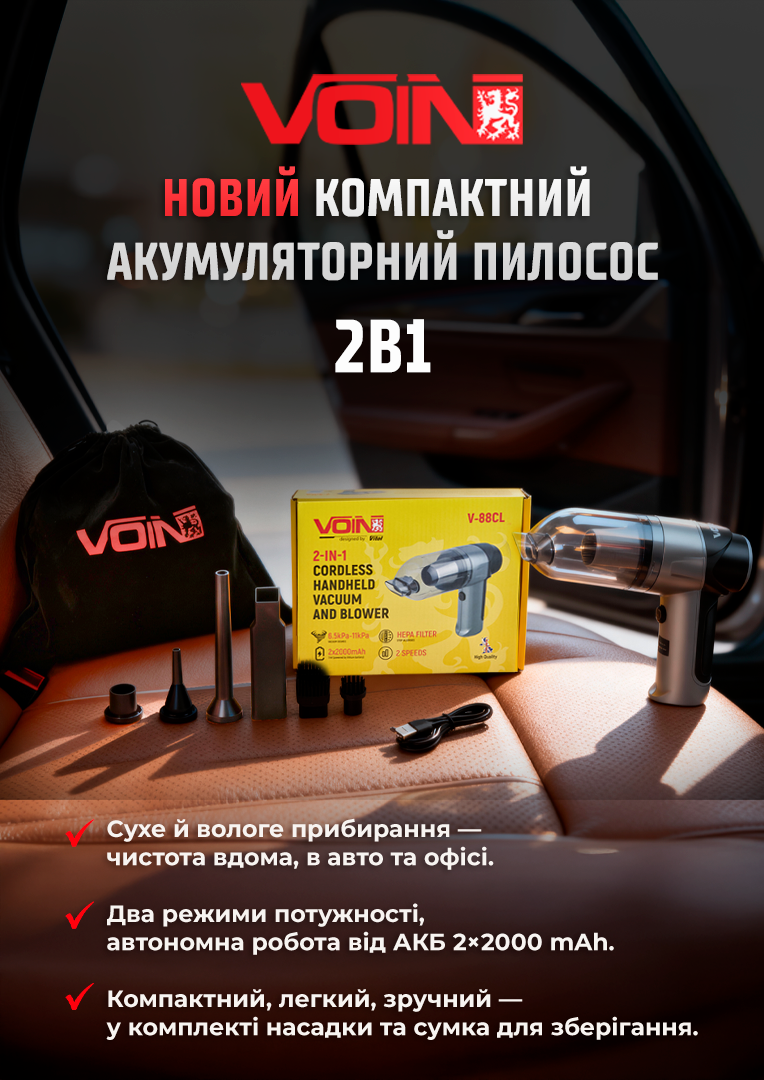 Voin. Новий Компактний акумуляторний пилосос 2в1