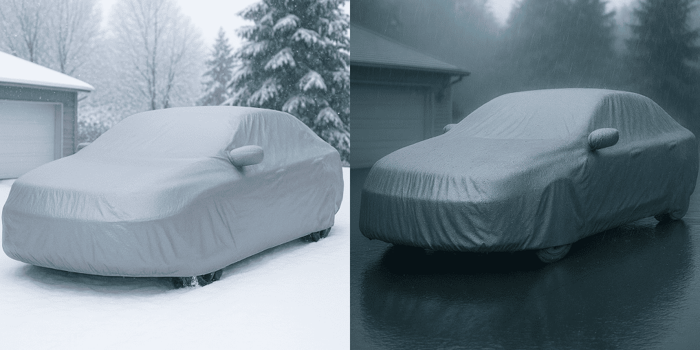 Багатошаровий всесезонний тент для стоянки під відкритим небом і в гаражі. Зовнішній шар PEVA захищає від дощу/снігу та УФ, підкладка з PP Cotton (спанбонду) м’яко контактує з лакофарбовим покриттям і запобігає мікроподряпинам. Сірий колір менше нагрівається на сонці, бруд менш помітний.