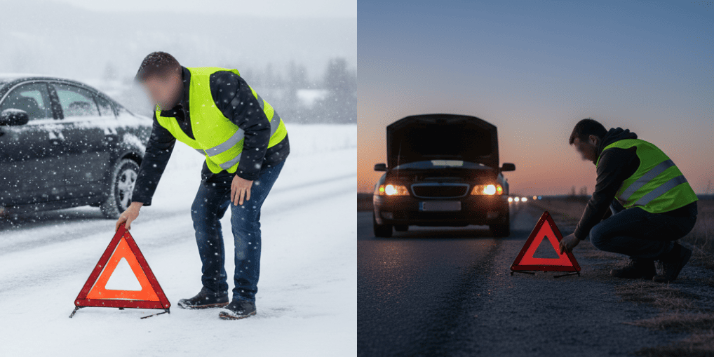 - Завжди одягайте жилет перед виходом з авто та ставте знак на рекомендованій відстані.