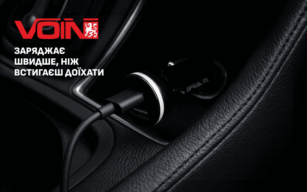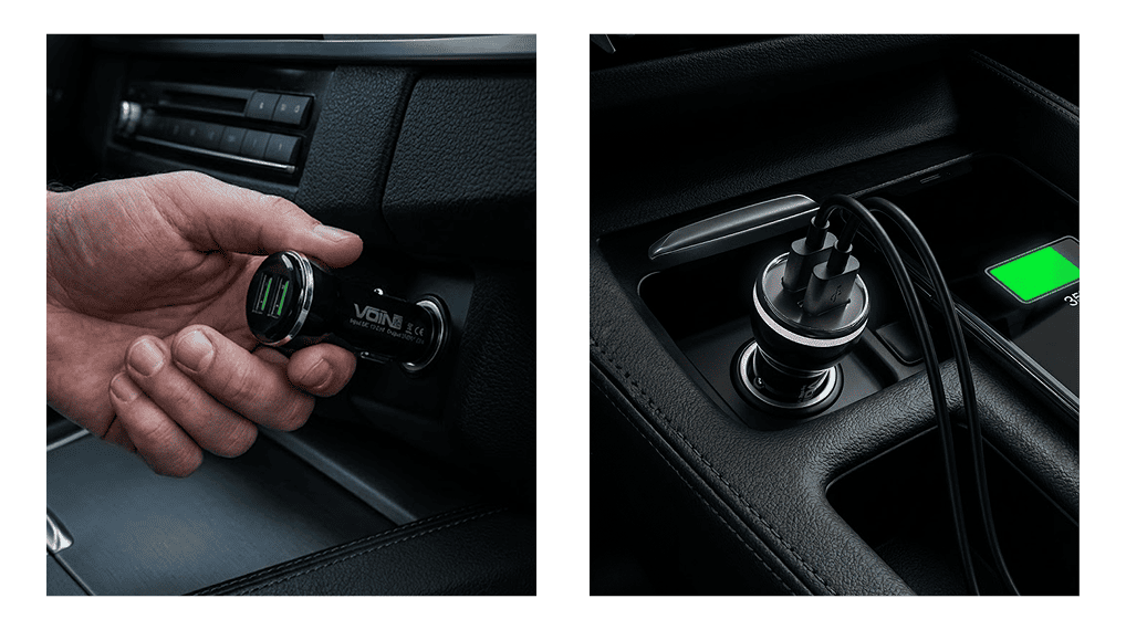 - Вставте зарядний пристрій VOIN у прикурювач автомобіля (12/24V).