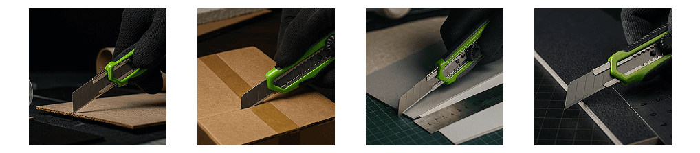 - Використовується для різання картону, гуми, пластику, лінолеуму, плівки, шпалер та ізоляційних матеріалів.